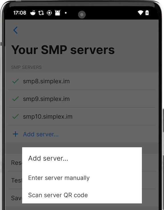Please note: when you change the servers in the app configuration, it only affects which servers will be used for the new contacts, the existing contacts will not automatically move to the new servers, but you can move them manually using "Change receiving address" button in contact/member information pages – it will be automated in the future.